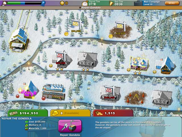 Populära semesterdestinationer vill uppgradera sina lokala attraktioner och dina färdigheter behövs i Build-a-lot: On Vacation! Använd dina byggfärdigheter för att snygga upp de lokala attraktionerna, skapa fyrstjärniga bostäder och planera de mest spännande utflykterna för att charma både turister och lokalbefolkning! Kan du få igång linbanan på skidorten? Hinner du bygga färdigt nöjesfältet innan ballongfestivalen? Ta reda på det i detta roliga strategispel.