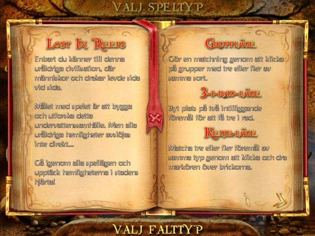 Ta del av uppbyggandet och utforskningen av en forntida civilisation under havets yta. Du får chansen att spela massor av nivåer och får tillgång till en imponerande samling av hjälpmedel. Slutför uppdraget genom att ta bort de antika marmorplattorna och bygg upp nya städer. Använd dina resurser och besegra bemästra varje nivå för att få full kontroll över kungariket under havets yta i spelet Lost in Reefs, ett kul 3-i-radspel.